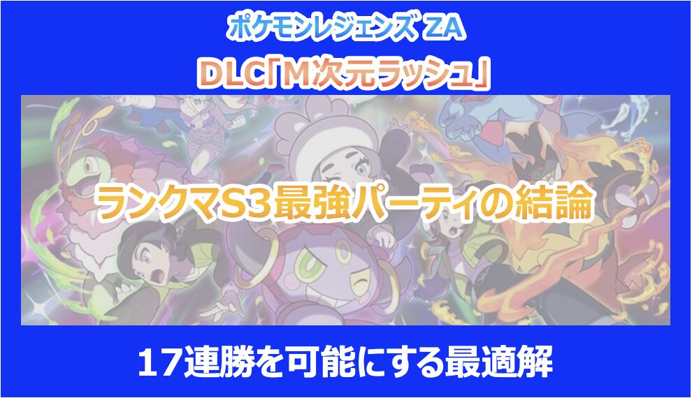 今回の記事では、M次元ラッシュ ランクマS3における最強パーティ「ニンフィア・デンリュウ・メガリザードンY」について解説しました。