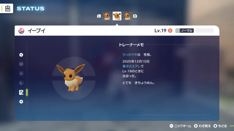 そして忘れてはならないのがイーブイです。 ★2のレア枠として出現するイーブイは、町の中や「ワイルドゾーン19」といった特定のエリアでも出ますが、出現率は低めです。