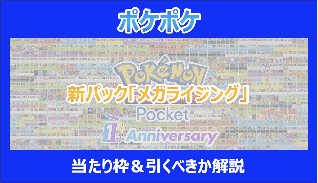 この記事を読んでいる方は、ポケポケに新しく実装されるパック「メガライジング」の収録カードや、その強さが気になっていると思います。 メガ進化という新しいギミックが環境にどう影響するのか、どのカードが当たり枠なのか、そして何より「このパック、引くべき?」と悩んでいらっしゃいますよね。
