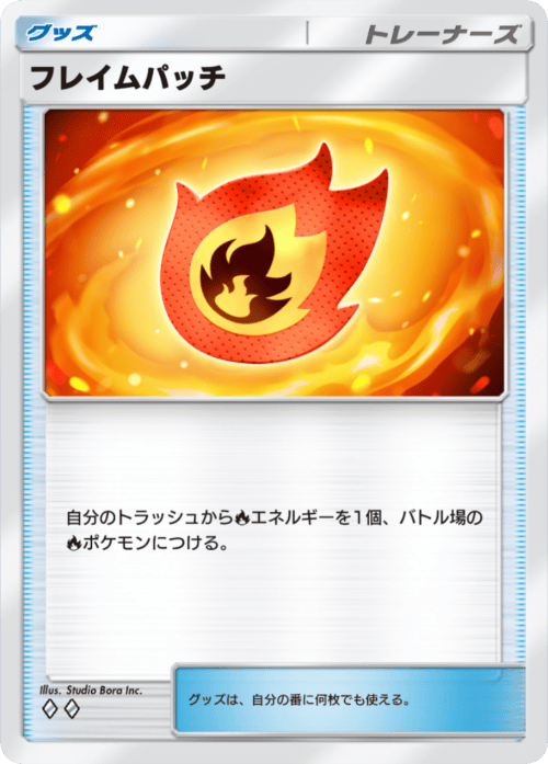 使用感 実際にエンテイ・バシャーモデッキで使ってみると、フレームパッチがあるかないかでデッキの回転率が全く違います。 エンテイで戦いつつ、手札にダブついた炎エネルギーを「博士の研究」などでトラッシュしても、それが全てリソースになる。 無駄が一切なくなり、デッキパワーが格段に上がりました。 メガバシャーモを引けなかったとしても、エンテイがフレームパッチのサポートを受けて4エネワザを連打するだけで勝ててしまう試合もあるほどです。