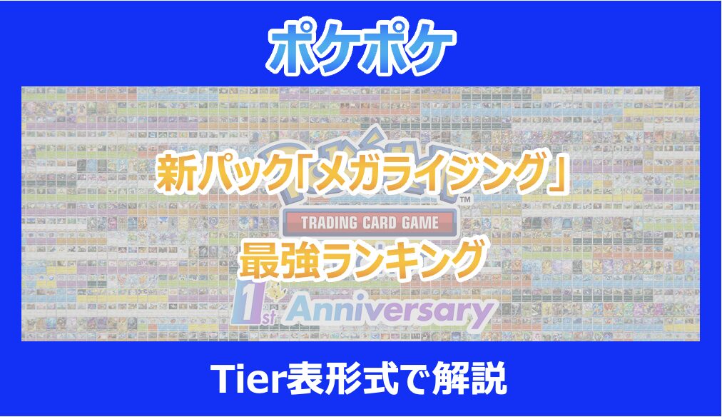 この記事を読んでいる方は、スマホ版ポケカアプリ「ポケポケ」に新しく実装されたパック「メガライジング」の、どのカードが強くて使えるのか、特に最強カードのランキング(Tier表)が気になっていると思います。 メガ進化の登場で環境がガラッと変わりそうで、ワクワクしますよね。