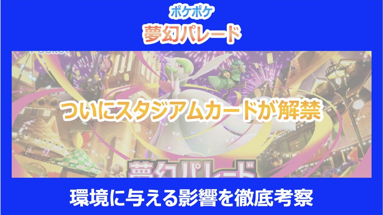 この記事を読んでいる方は、2026年1月29日にリリースされる新拡張パック「夢幻パレード」の情報、特についに実装される「スタジアムカード」が今の対戦環境をどう変えてしまうのか、その詳細が気になっていると思います。