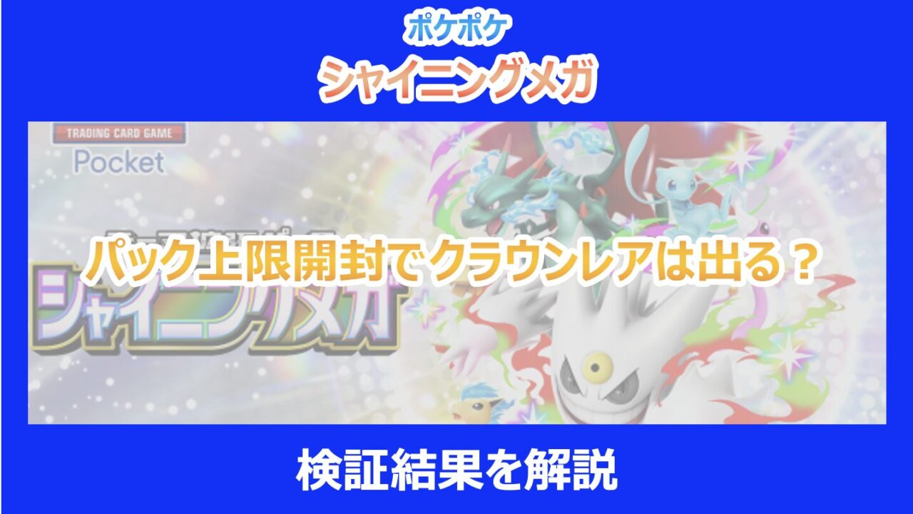 この記事を読んでいる方は、ポケポケの新拡張パック「シャイニングメガ」の開封率や、上限まで引いた際にクラウンレアが本当に出るのかが気になっているはずです。 待望の新パックということで、どれだけのリソースを投入すれば目当てのカードが引けるのか、不安な方も多いでしょう。