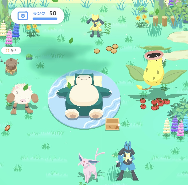 - スキル「食材ゲットS」が優秀 きのみタイプでありながら、スキルで食材(マメミートなど)を拾ってきてくれるため、料理の安定にも貢献します。