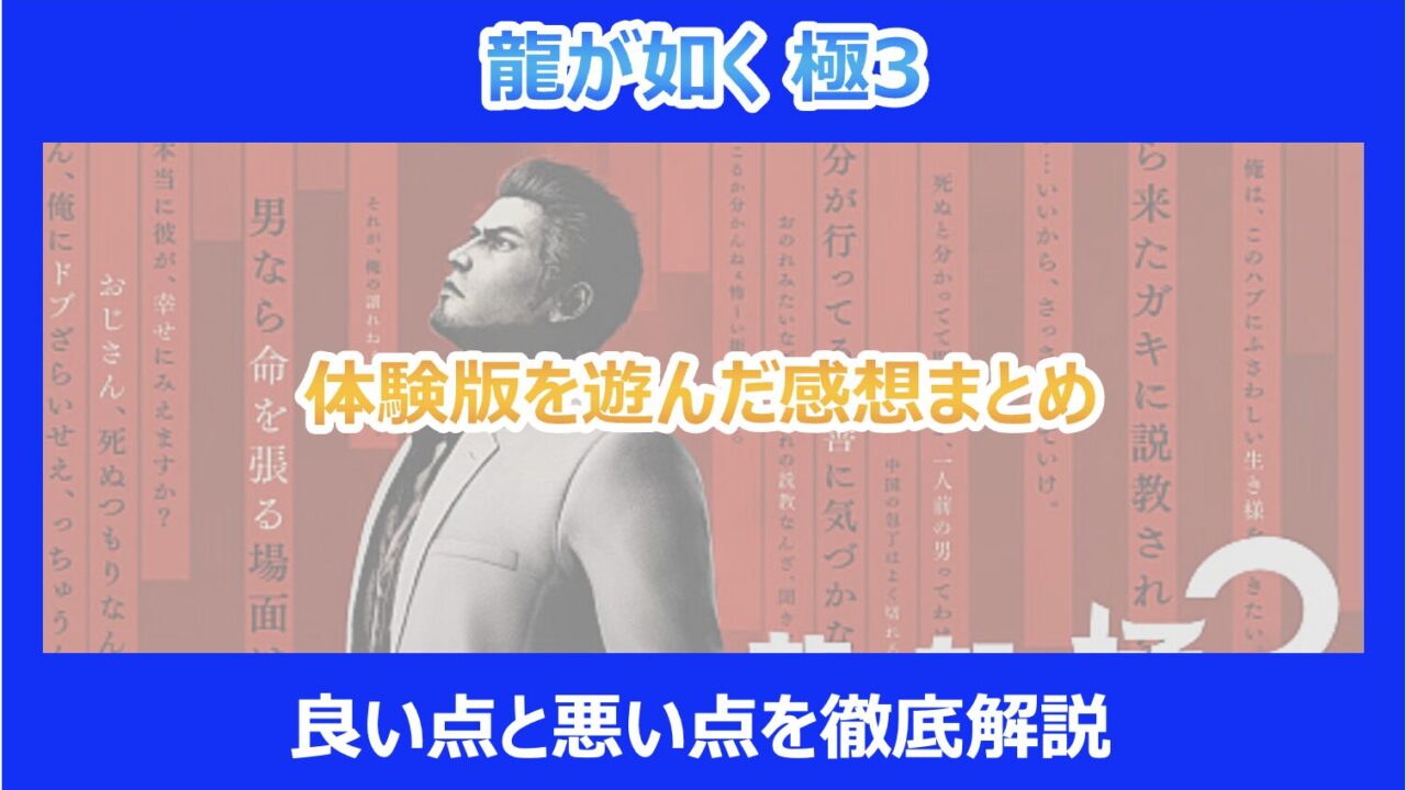 この記事を読んでいる方は、待望のリメイク作である『龍が如く極3』の体験版をプレイすべきか、あるいは実際に遊んだユーザーがどのような感想を抱いているのかが気になっていると思います。 シリーズを長年追い続け、本作も隅々までやり込んでいる私桐谷が、体験版で判明した進化の全貌と、製品版に向けての期待値を徹底的に解説します。