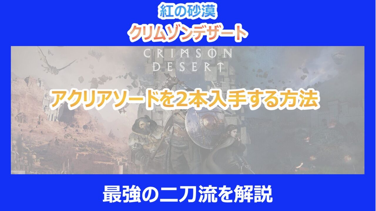 この記事を読んでいる方は紅の砂漠でのアクリアソード2本目の入手方法と、最強の二刀流の構築が気になっていると思います。