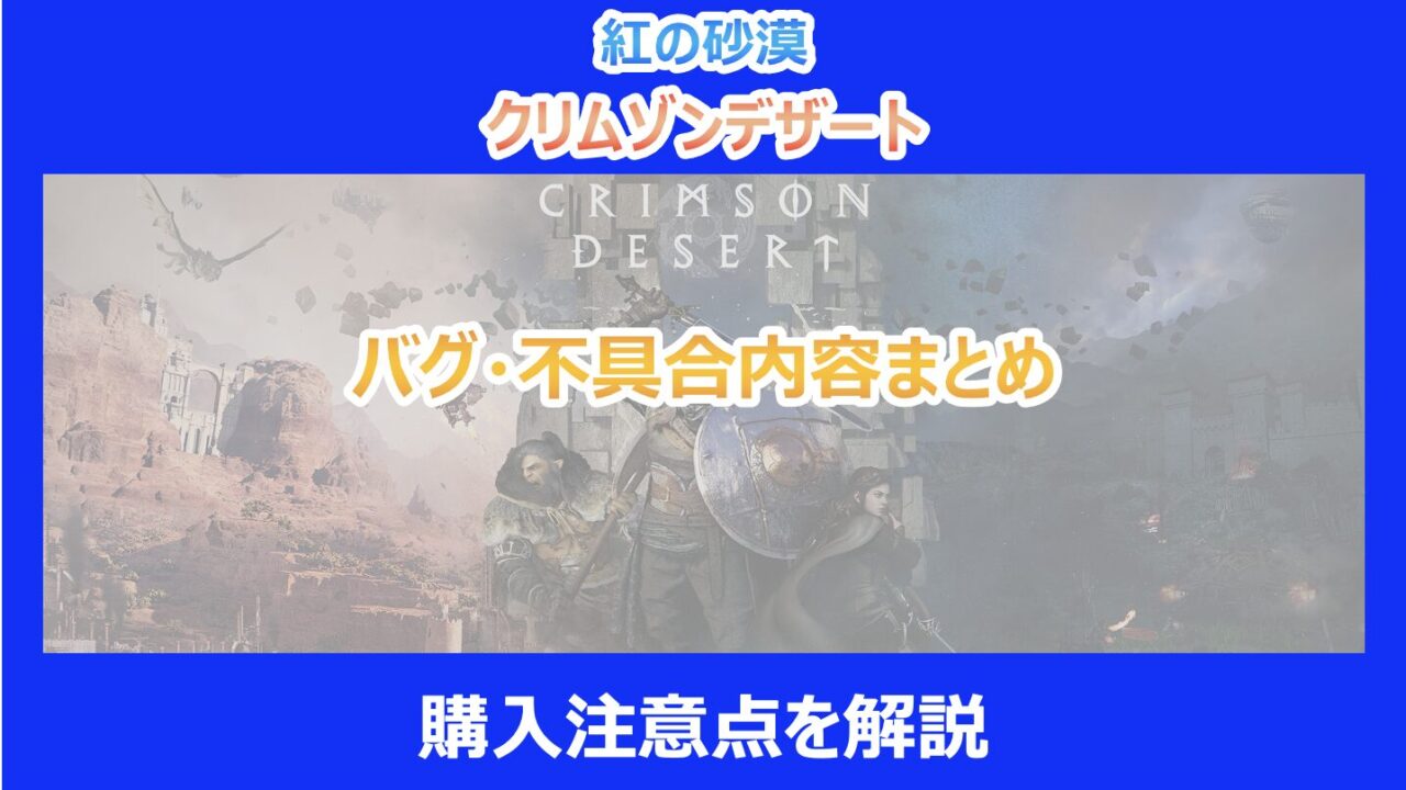 【紅の砂漠】バグ・不具合内容まとめ|購入注意点を解説|クリムゾンデザート