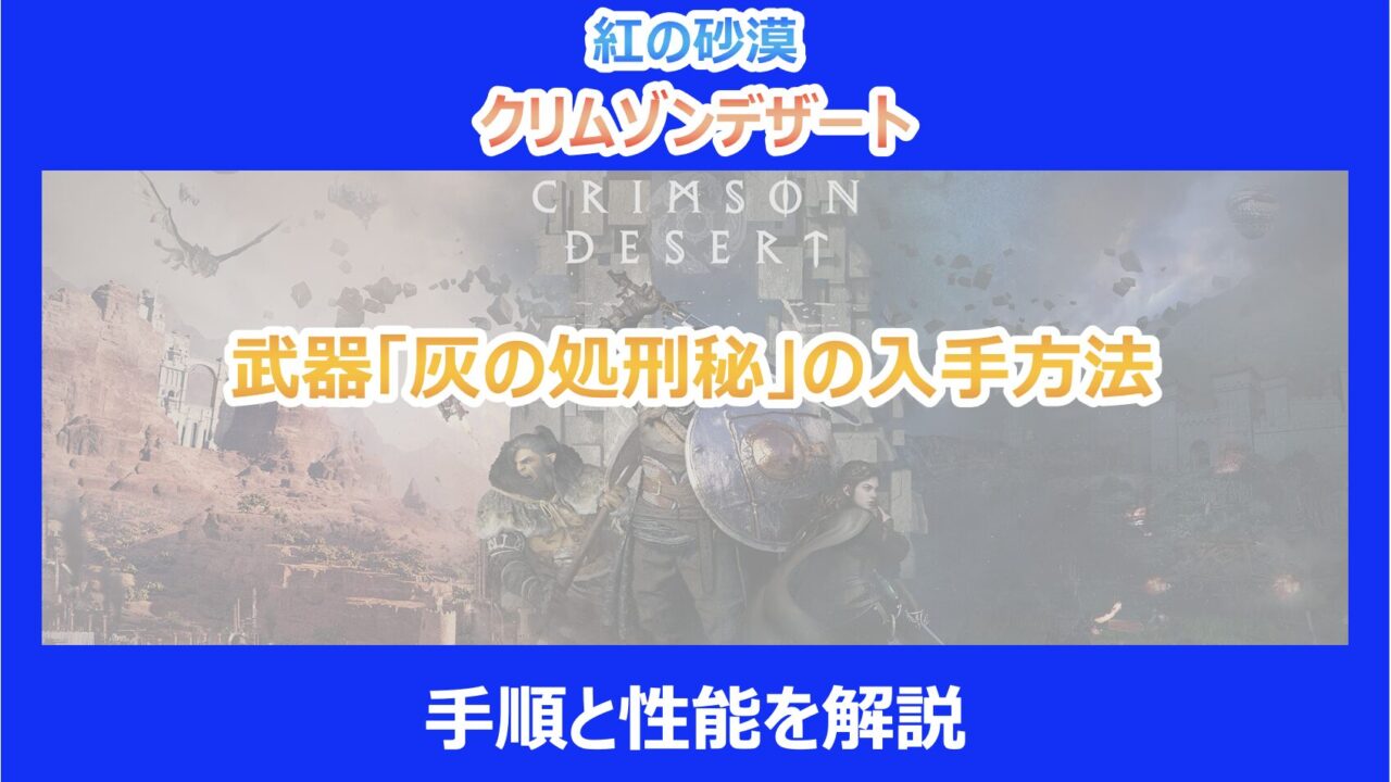 この記事を読んでいる方は、最新オープンワールドアクションRPG「紅の砂漠(クリムゾンデザート)」に登場する強力な両手剣「灰の処刑秘」の入手方法や性能が気になっていると思います。