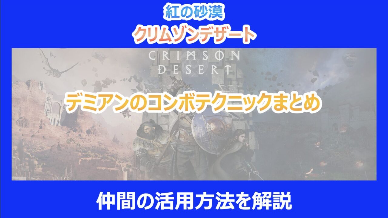 今回のレビューでは、紅の砂漠におけるデミアンのコンボテクニックと仲間の活用方法について詳しく解説しました。 クリフとは一味違う、テクニカルで奥深いデミアンの操作に慣れることで、戦闘の楽しみ方がさらに広がるはずです。