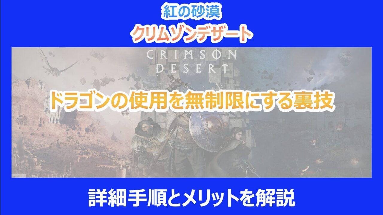 この記事を読んでいる方は紅の砂漠でドラゴンの使用を無制限にする裏技が気になっていると思います。