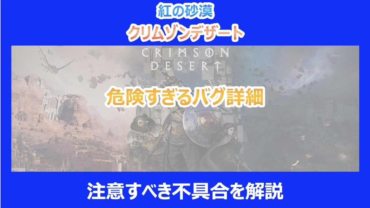 この記事を読んでいる方は、紅の砂漠(クリムゾンデザート)をプレイする中で「データが壊れるようなバグはないか」「効率を落とす不具合に遭いたくない」と不安に感じていることでしょう。 広大なオープンワールドと超美麗なグラフィック、そして自由度の高いアクションが魅力の本作ですが、実はリリース直後ということもあり、進行に致命的な影響を与える不具合がいくつか確認されています。