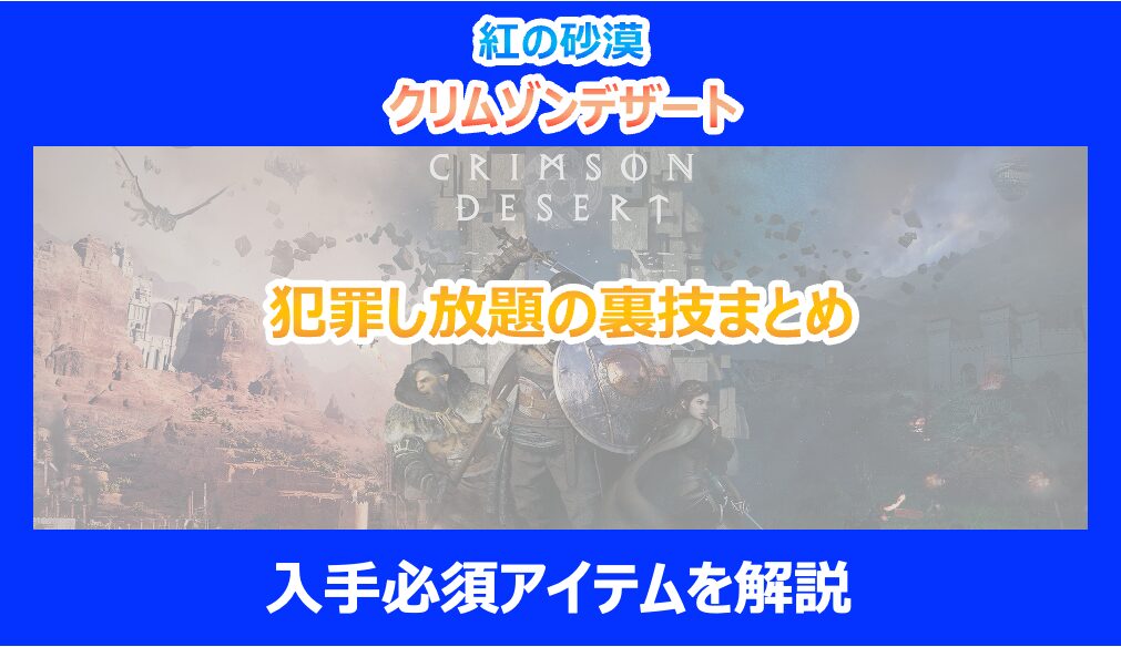 【紅の砂漠】犯罪し放題の裏技まとめ|入手必須アイテムを解説|クリムゾンデザート