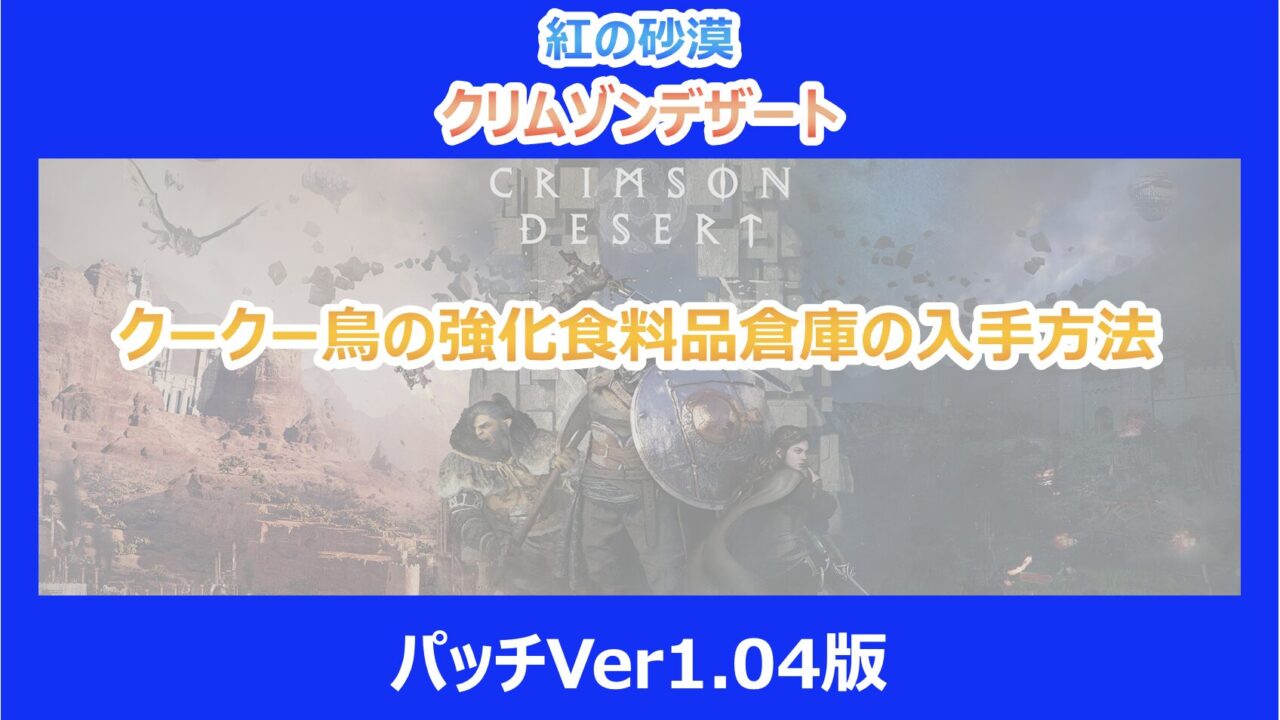 【紅の砂漠】クークー鳥の強化食料品倉庫の入手方法|パッチVer1.04|クリムゾンデザート