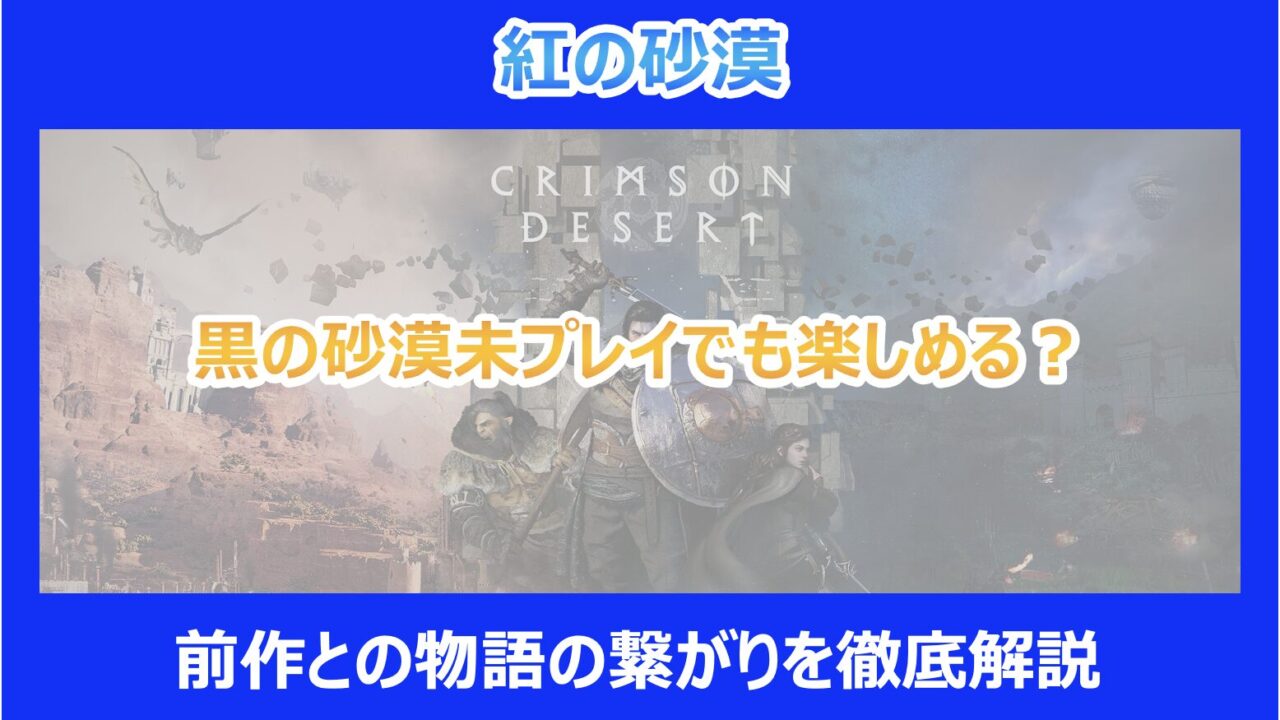 この記事を読んでいる方は、2026年3月20日に発売される新作「紅の砂漠」について、前作「黒の砂漠」を遊んでいなくても楽しめるのか気になっていると思います。