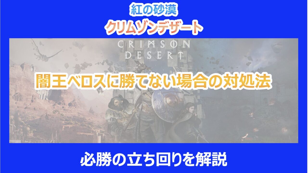 この記事を読んでいる方は、クリムゾンデザートの闇王ベロスに勝てず、必勝の立ち回りが気になっていると思います。