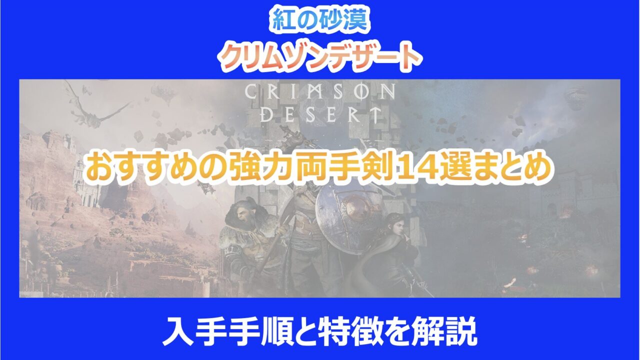 この記事を読んでいる方は紅の砂漠で入手できる強力な両手剣の入手手順や性能が気になっていると思います。
