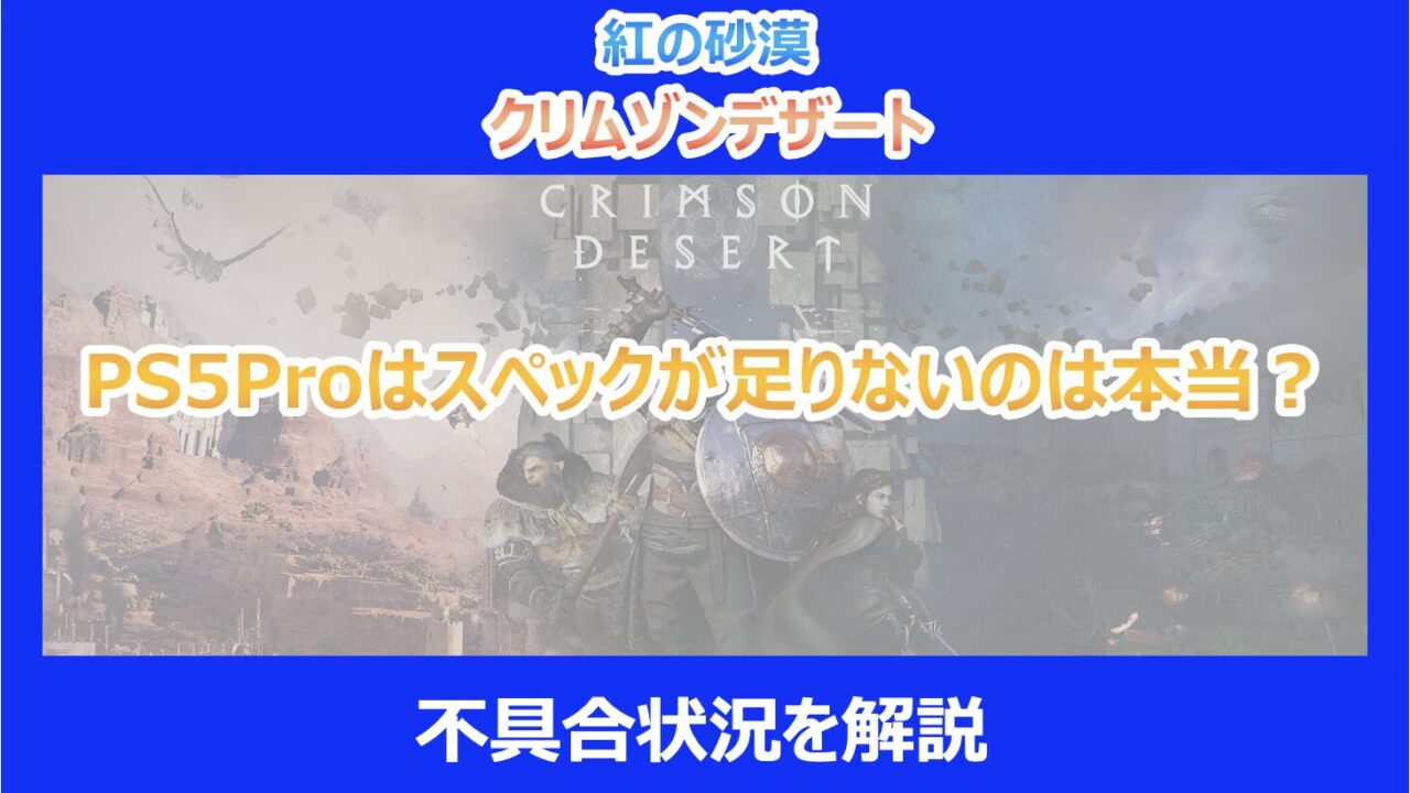 この記事を読んでいる方は、「紅の砂漠(クリムゾンデザート)」をPS5や最新のPS5 Proでプレイしようと考えているものの、ネット上で囁かれている「スペック不足」や「頻発する不具合」の噂が本当なのか、非常に気になっていると思います。