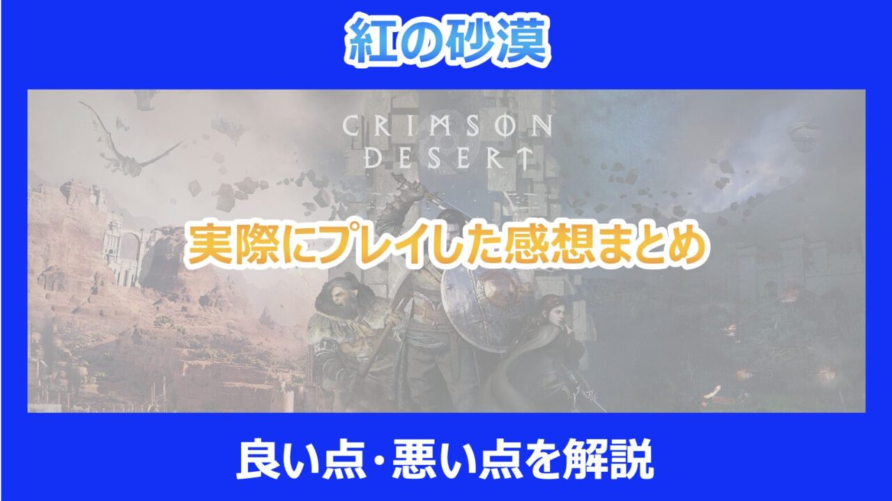 この記事を読んでいる方は2026年3月20日発売の「紅の砂漠」の実際の評価や、プレイして感じた不満点などが気になっていると思います。