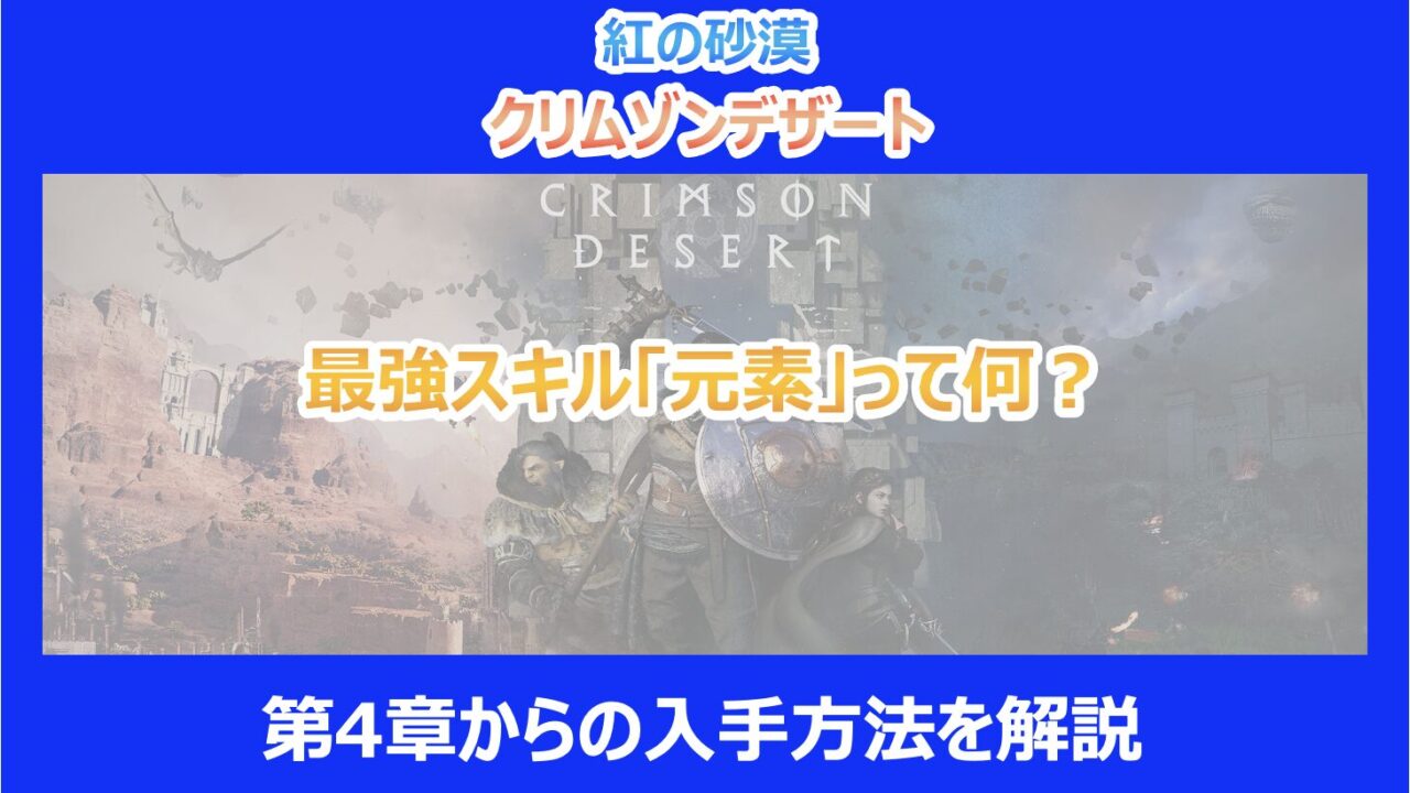この記事を読んでいる方は、本作『紅の砂漠(クリムゾンデザート)』における最強の隠し要素とも言えるスキル「元素」の存在や、その具体的な入手方法が気になっていると思います。 広大なオープンワールドを探索する中で、属性攻撃の必要性を感じつつも、どこで手に入るのか迷っているプレイヤーは非常に多い現状です。