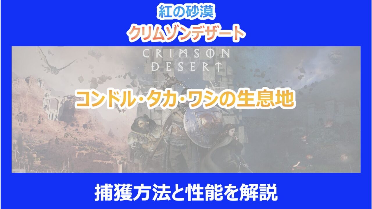 コンドルは本作における大型の鳥類として存在感を示しています。 主な生息地はCrimson DesertエリアのVania南部の地域です。