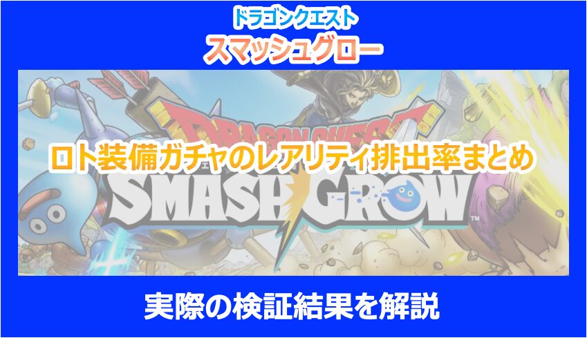 この記事を読んでいる方は、スマホアプリ「ドラゴンクエスト スマッシュグロウ」のロト装備ガチャのレアリティ排出率や、実際の検証結果が気になっていると思います。