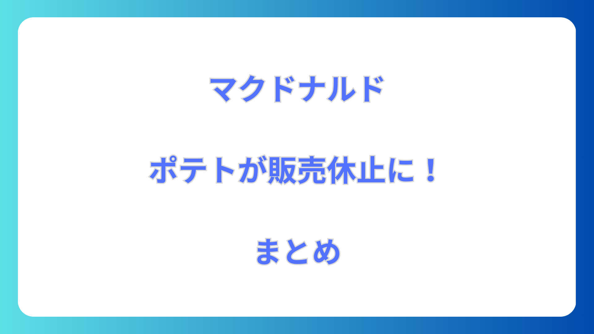 今回は韓国マクドナルドでポテトの販売が休止になった事をお伝えしました。
