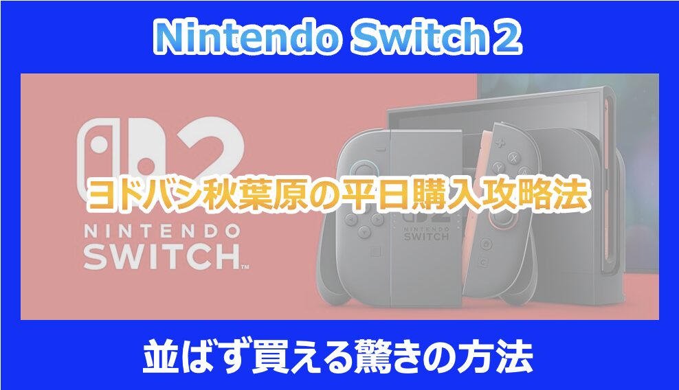 この記事を読んでいる方は、「Switch2が欲しいけど、土日はヨドバシ秋葉原が大行列で買えない…」「仕事の都合で平日しか行けないけど、平日に在庫なんてあるの?」といった疑問や不安を抱えていると思います。 人気タイトルが続々発表され、いよいよマストバイアイテムとなったSwitch2。 しかし、その人気ゆえに週末の争奪戦は熾烈を極めていますよね。