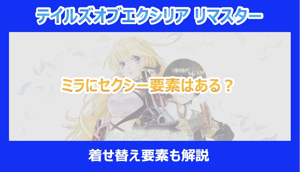 この記事を読み終える頃には、エクシリアリマスターに登場するミラのセクシー要素や、豊富に用意された着せ替え衣装に関するあなたの疑問が、すっきりと解決しているはずです。
