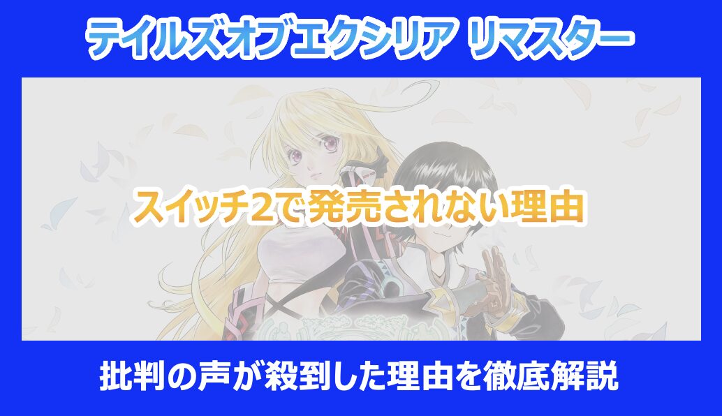 今回は、「テイルズ オブ エクシリア リマスター」がスイッチ2で発売されない理由と、オリジナル版が抱えた問題、そしてシリーズの現状について深く掘り下げてきました。